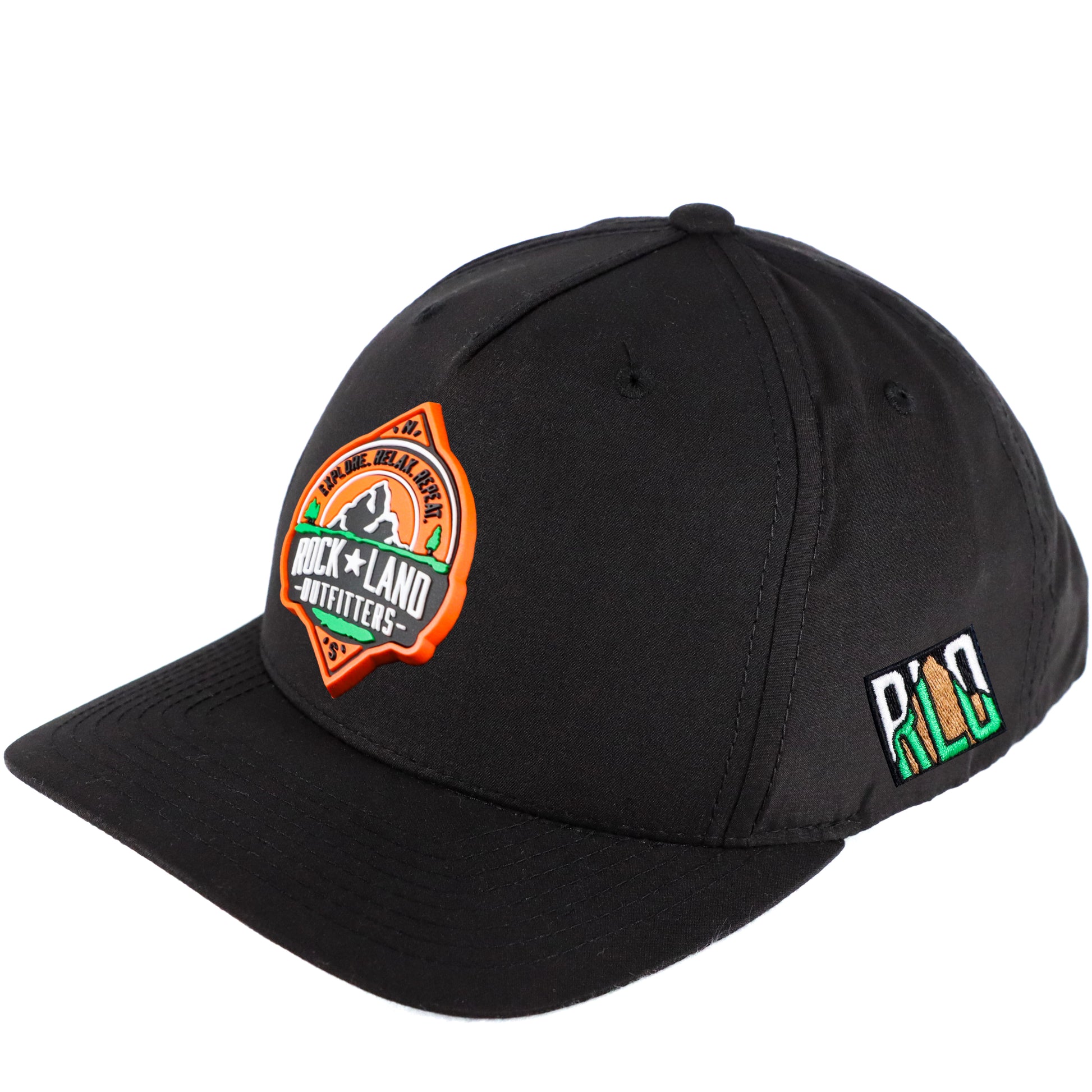 Take your outdoor adventures to the next level with our black Rock Land Outfitters 3-D PVC Patch Hat. Crafted with a 5 panel, mid-structured design and a pre-curved brim, this hat provides ultimate comfort and performance. The snapback closure allows for a customizable fit. Show off your love for the outdoors with our 3-D PVC logo patch hat.